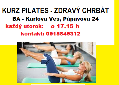 ...podvečer PILATES – Zdravý chrbát s nádychom jógy a strečingu – naučíme sa ako sa udržiavať fit pri sedavom spôsobe života a ktoré cviky pravidelne doma cvičiť, aby ste boli bez bolesti chrbta, posilníme aj bruško a panvové dno. Cvičenie vhodné pre dámy aj pre pánov v rôznom veku