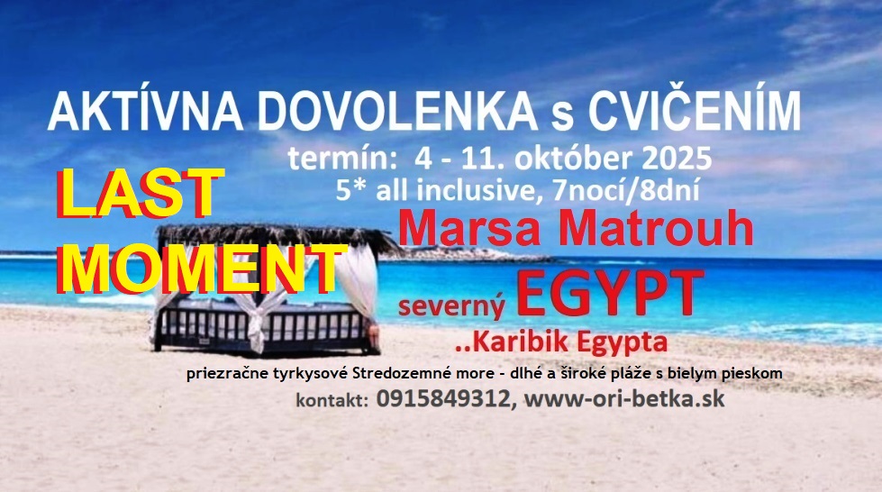 Preneste sa na chvíľu spolu s nami na severné pobrežie Egypta, ktoré bolo len pár rokov dozadu otvorené turizmu, do oblasti Marsa Matrouh ..nazývanej aj "Karibik Egypta" ..tešte sa z priezračného tyrkysového mora a bieleho piesku ..navštívte tajomné pyramídy či mysteriózne sfingy.