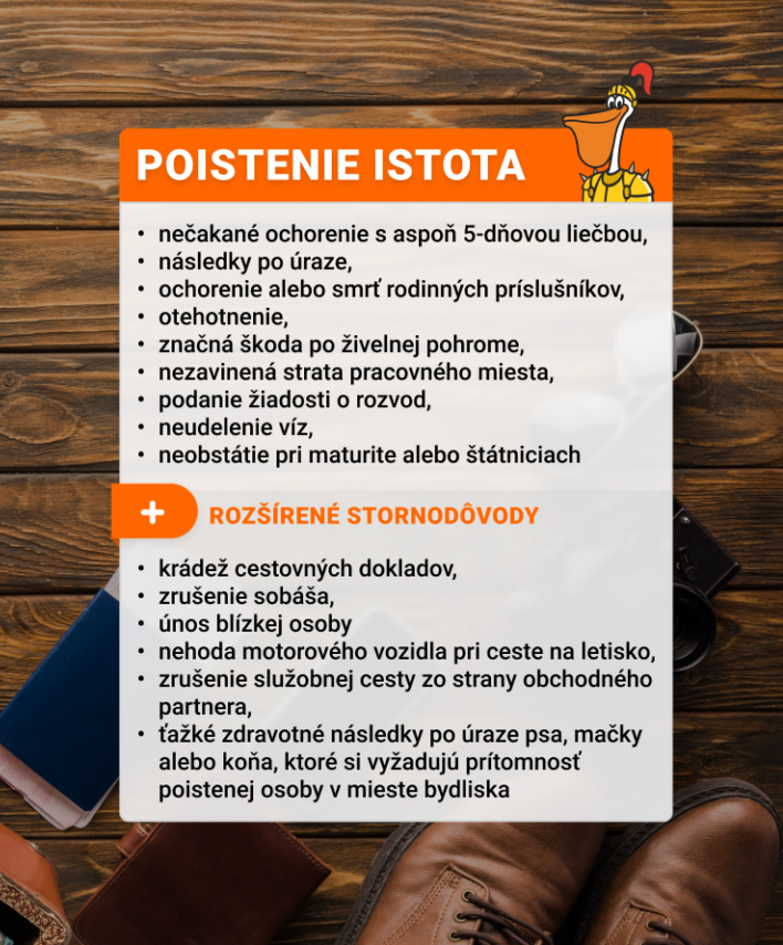 Nepovinný príplatok: Komplexné cestovné poistenie ISTOTA na pobyt 7nocí/8dní je 50€/osoba /Európska cestovná poisťovňa, spadá pod Generali/;